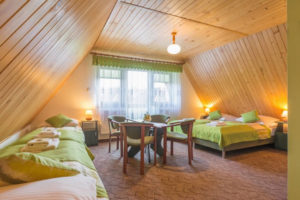 - 25 pokojami z łazienkami. Pokoje są 1, 2, 3, 4 osobowe, z łóżkami pojedynczymi i podwójnymi,